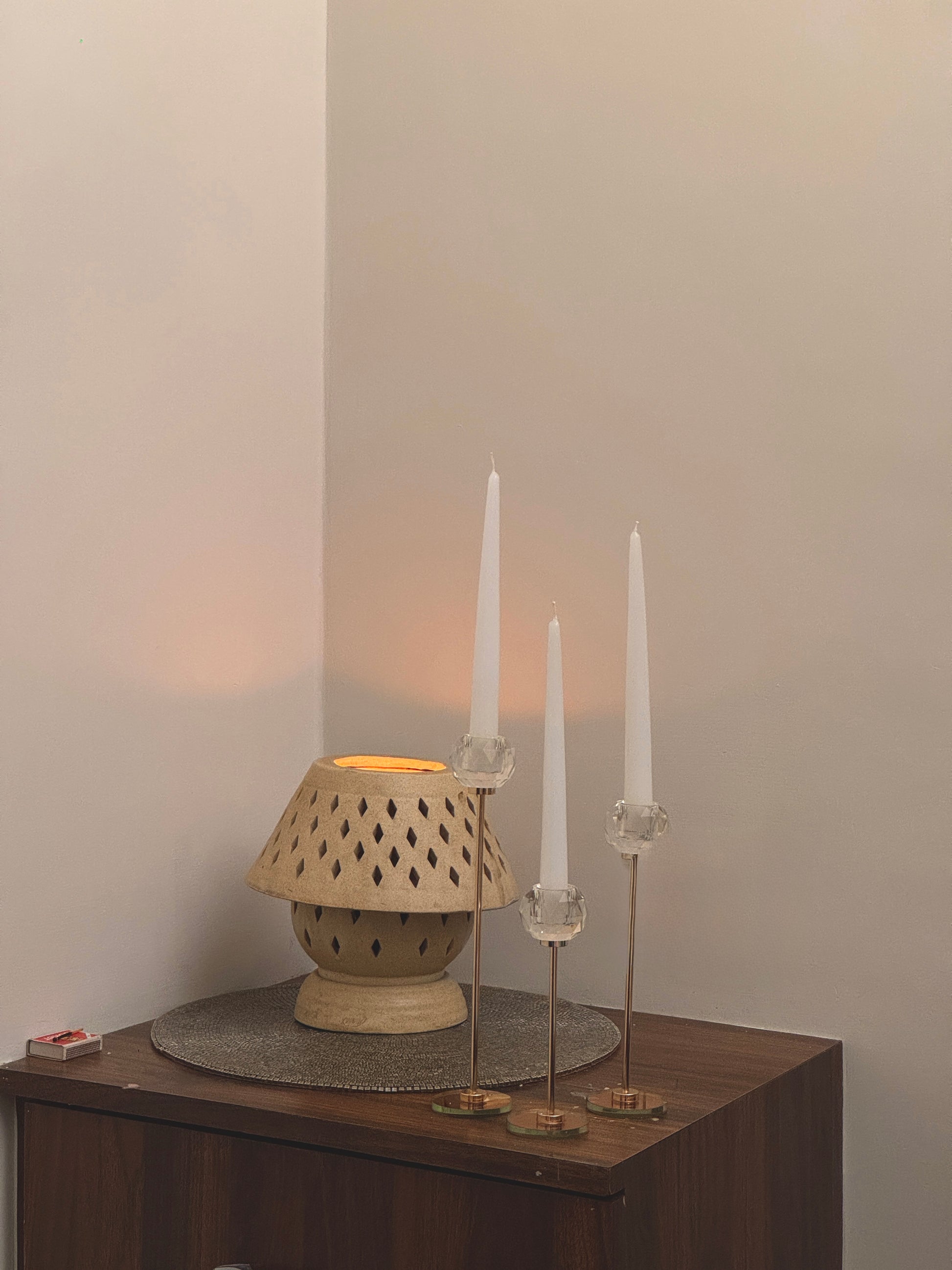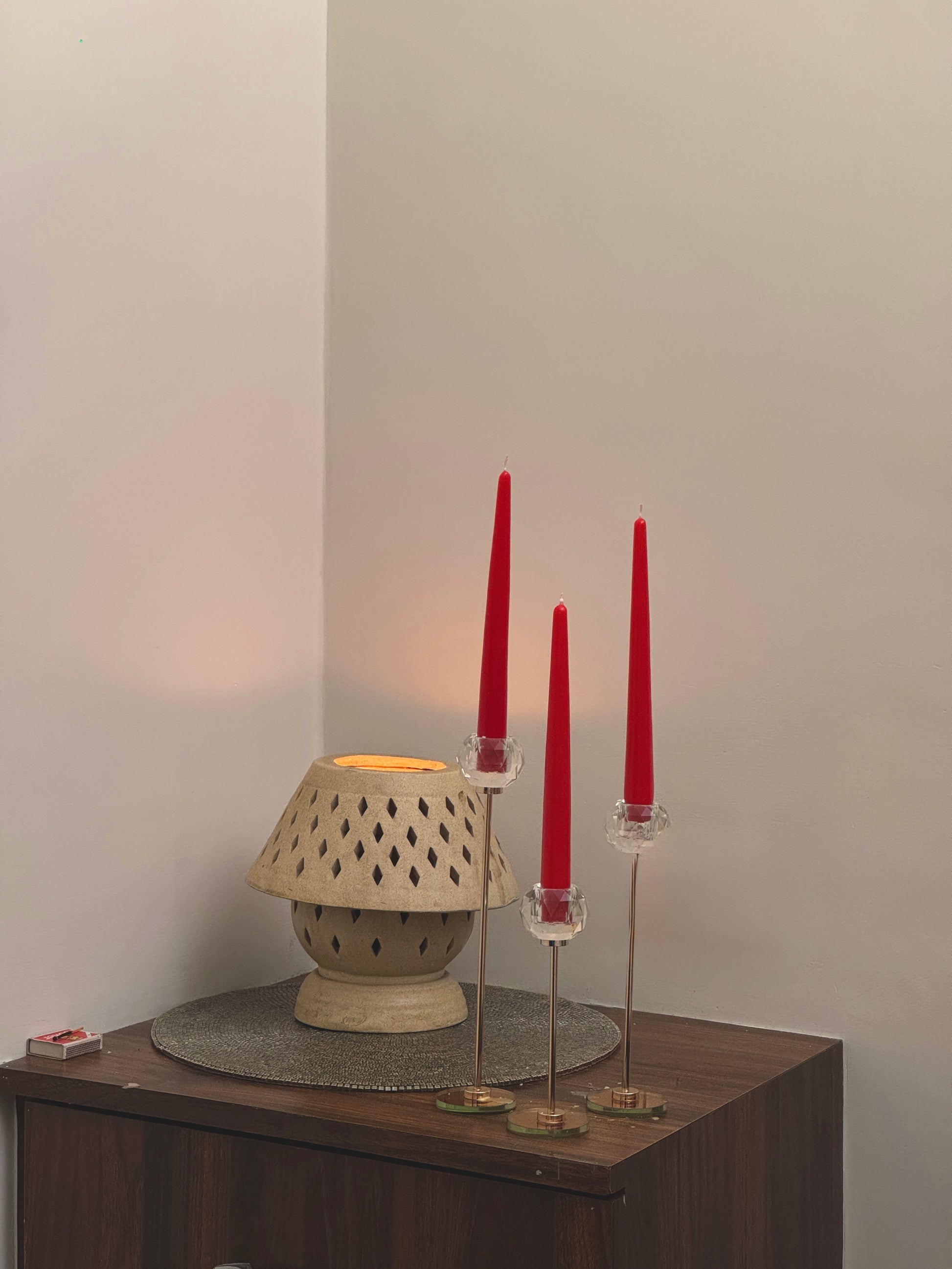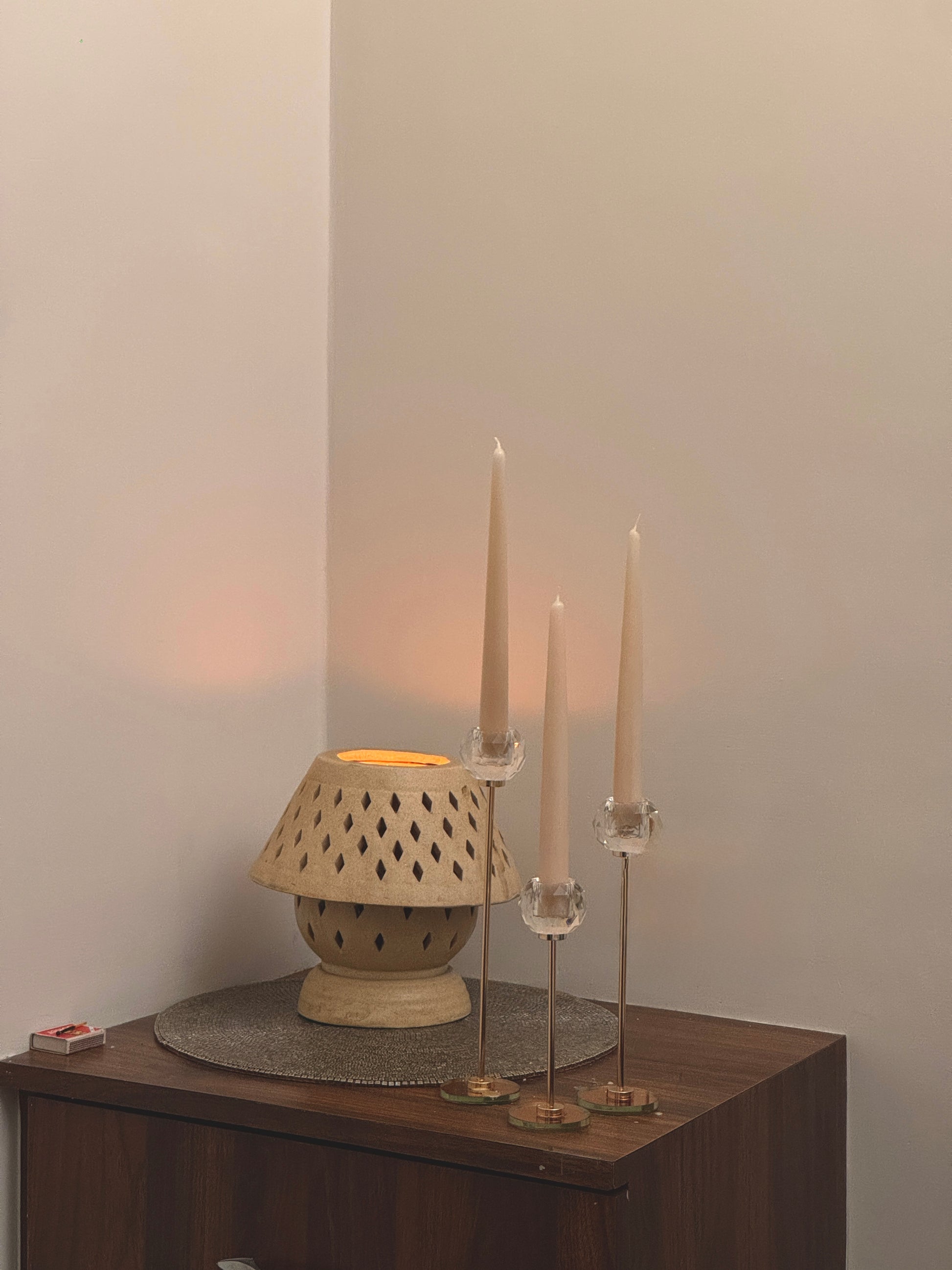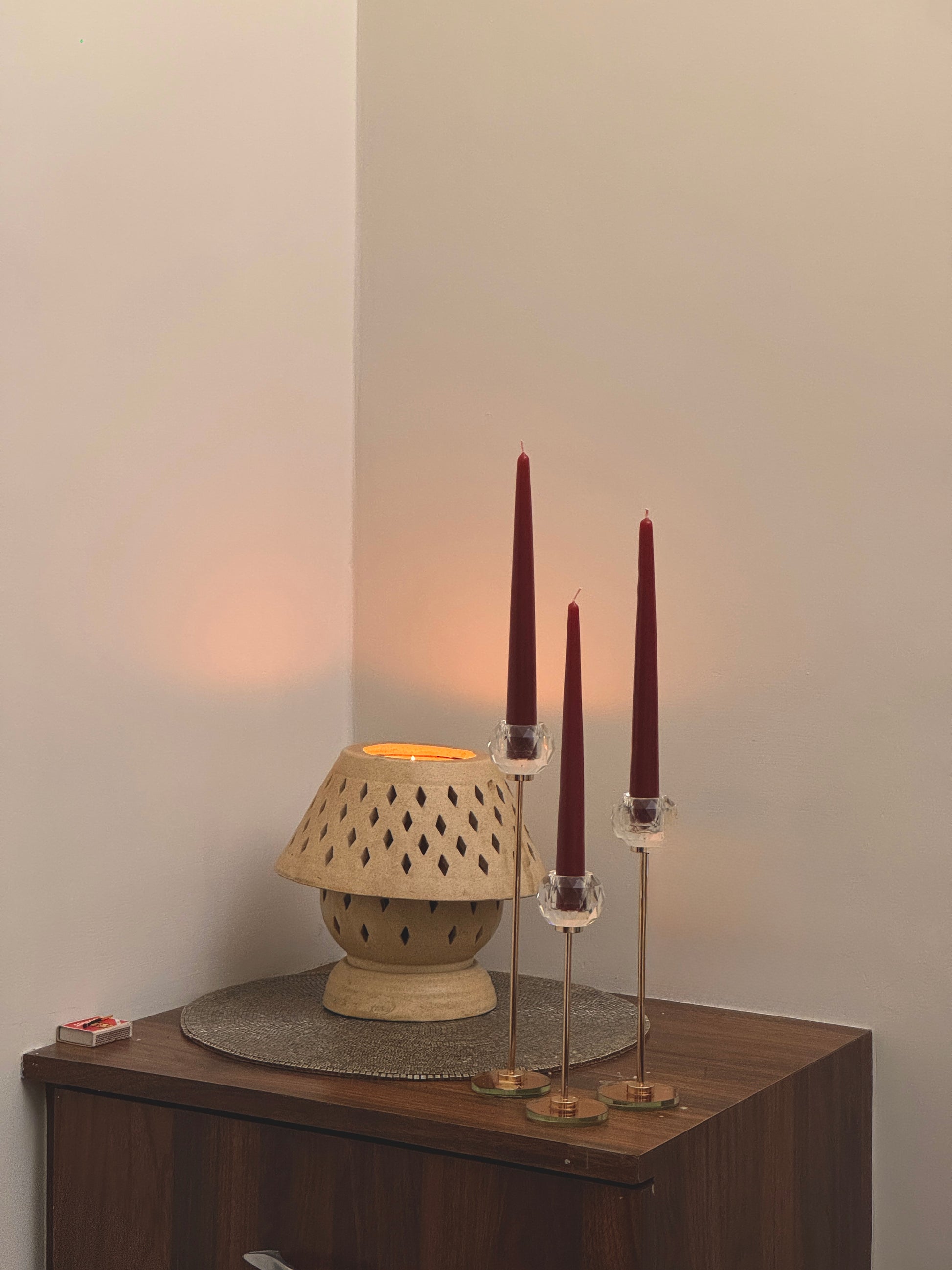 Place the taper candle securely in a proper-sized holder or heat resistant surface ensuring it's stable and upright. Light the wick, and enjoy the soft, ambient glow. For best results, trim the wick to about 1/4 inch before lighting each time to prevent excessive flickering.