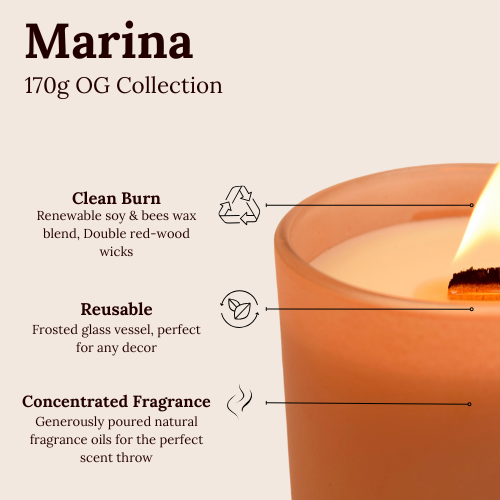- 170g custom blend candle in a reusable glass jar