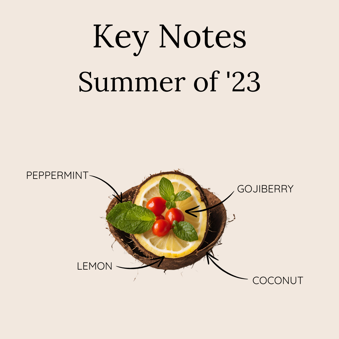 Packed with the notes of gojiberry, peppermint, lemon & coconut this scented candle fills the room with zesty, refreshing and soothing aroma. Gojiberry promotes a feeling of well-being & vitality. Peppermint with its invigorating properties improves mental clarity and causes a cooling sensation which calms body and mind. Lemon improves mood and coconut promotes relaxation and create a calming atmosphere.